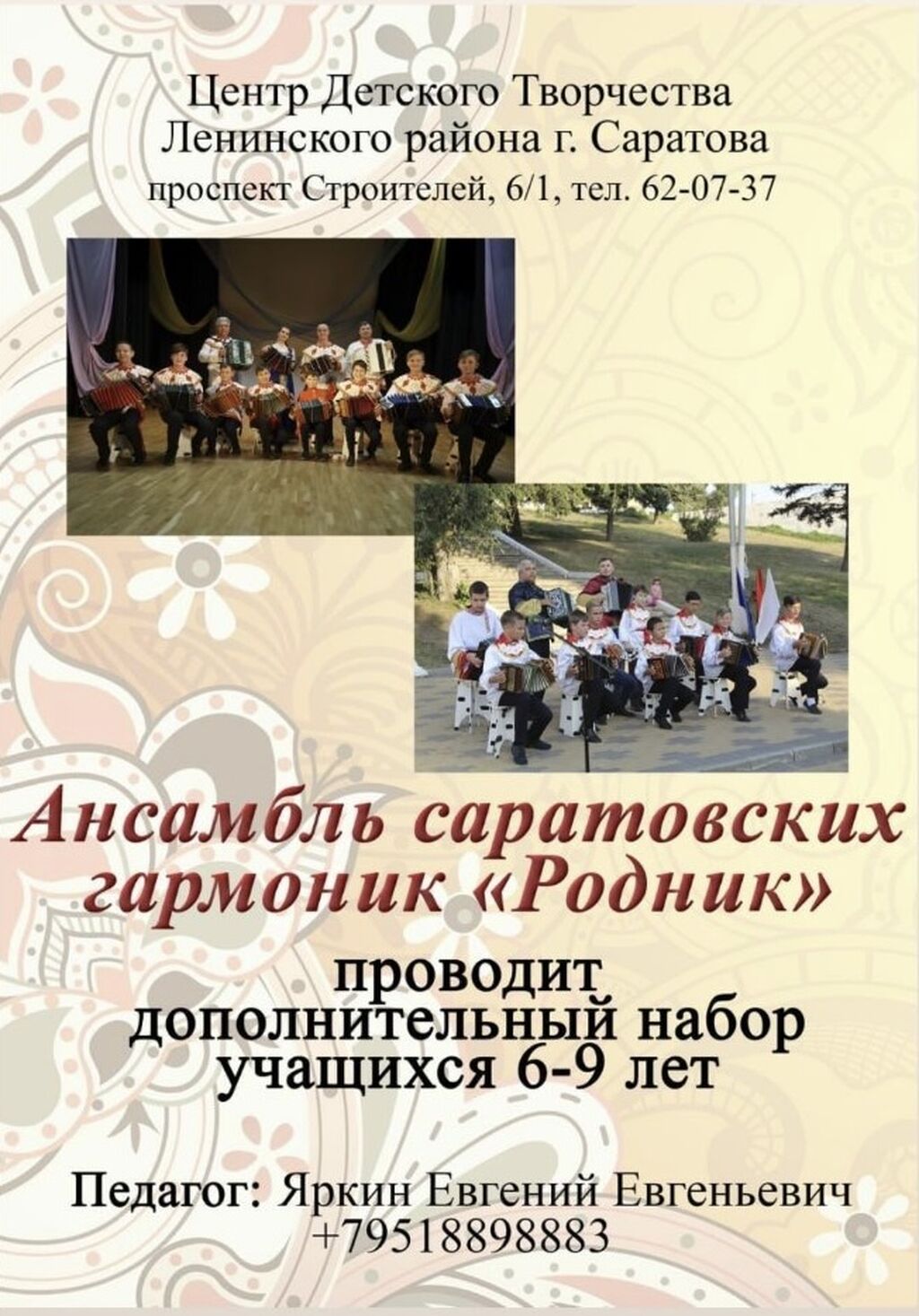 25-08-2023 Ансамбль саратовских гармоник "Родник" проводит дополнительный набор