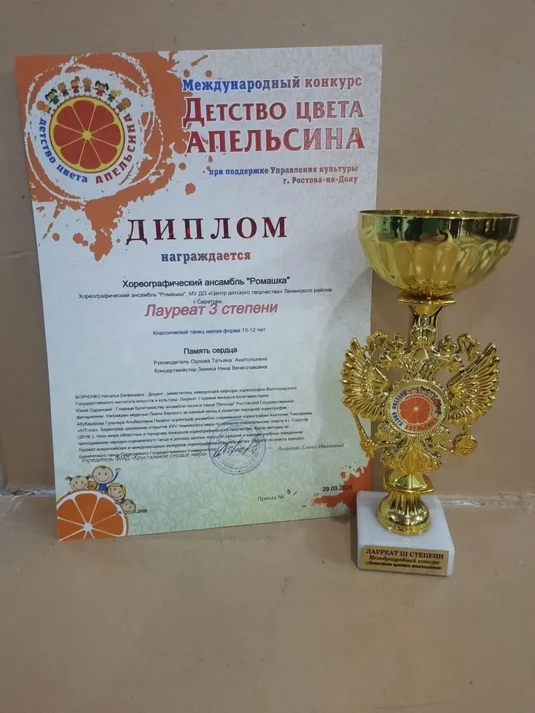 29 марта 2026 года в Саратовском областном центре народного творчества им. Л.А. Руслановой проходил многожанровый Международный конкурс-фестиваль «ДЕТСТВО ЦВЕТА АПЕЛЬСИНА».