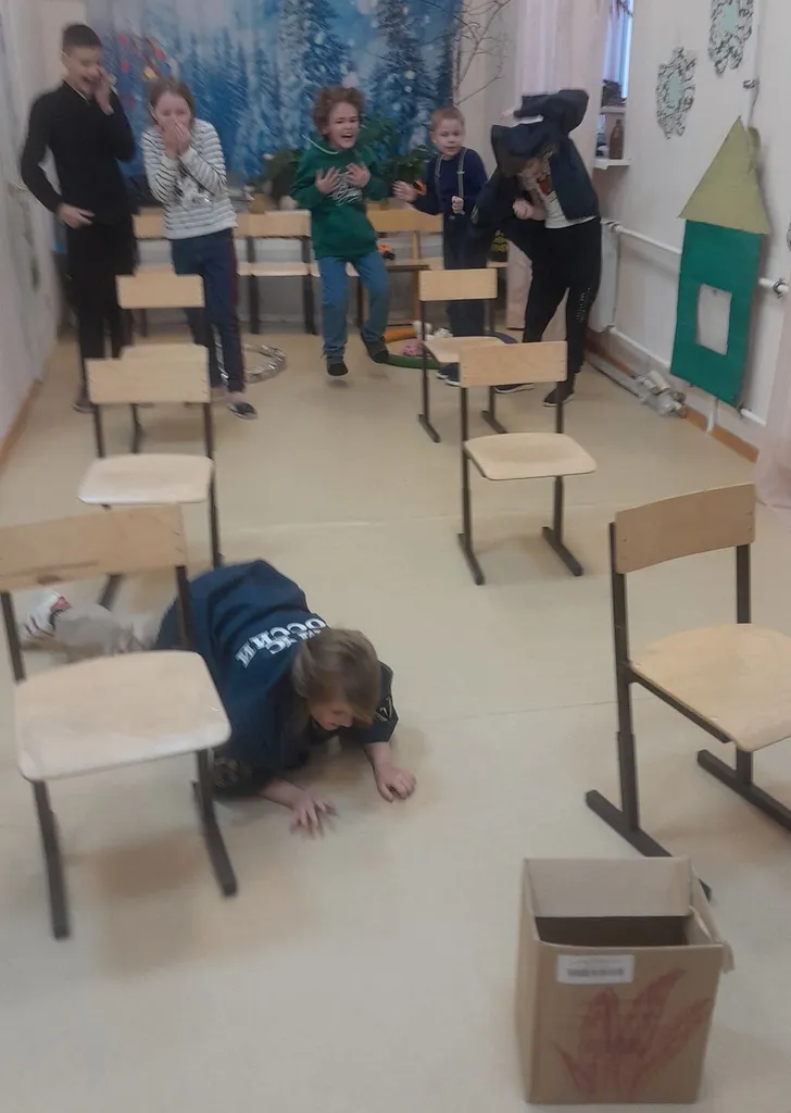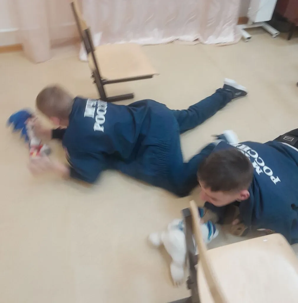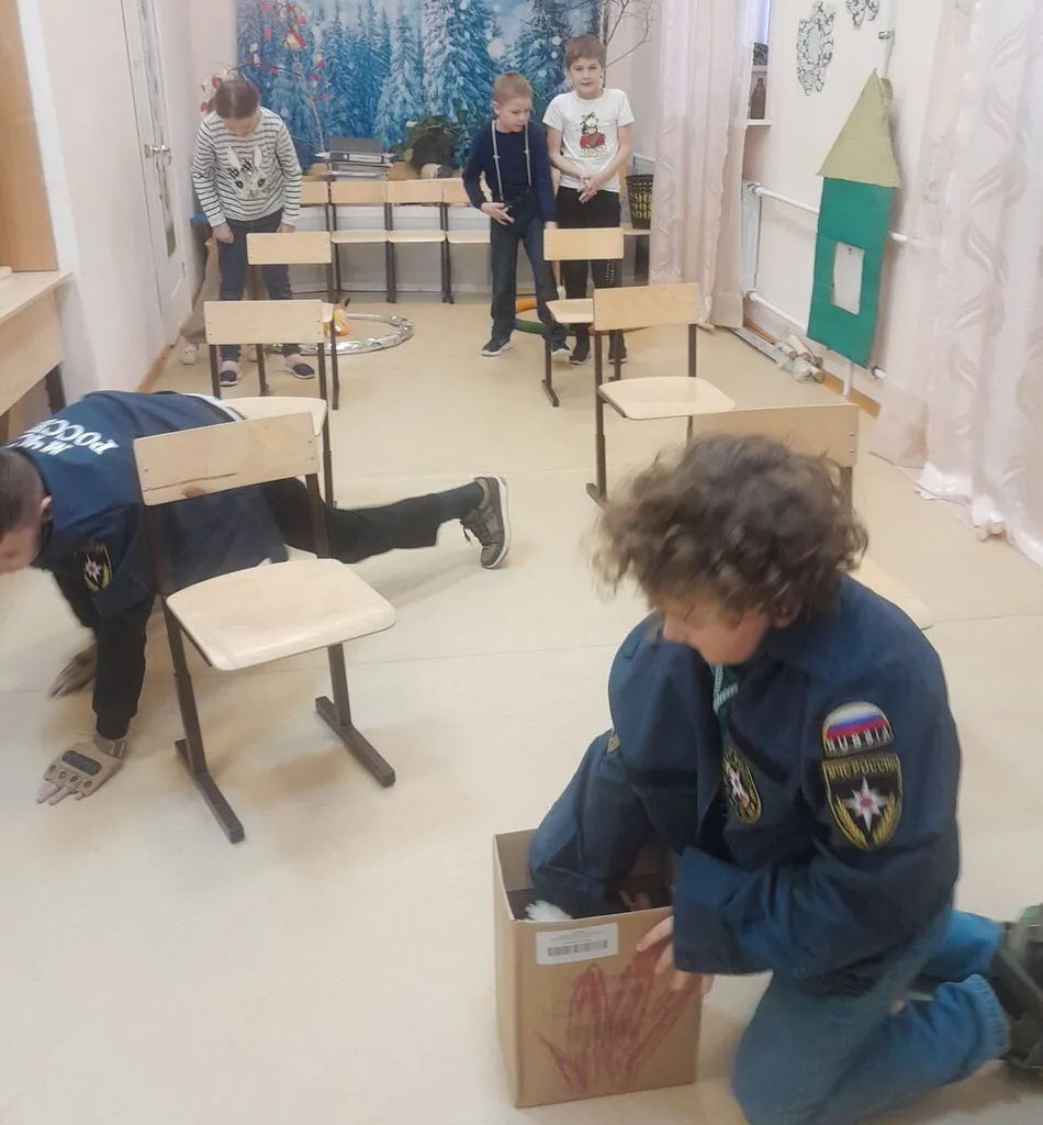 Кульминацией мероприятия стала подвижная игра-спасение. По легенде, в «задымленном доме» остались животные. Преодолевая импровизированный лабиринт из стульев дети ползком пробирались к «очагу возгорания», забирали «пострадавших» и доставляли их в безопасное место.
