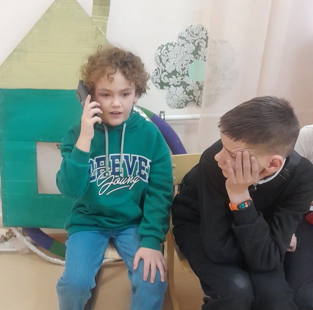 Первым этапом стала ситуативная игра «Звонок диспетчеру». Вооружившись телефоном, дети называли номера телефонов, по которым нужно звонить, чтобы сообщить о пожаре. Ребята вспомнили, как правильно вызывать спасателей. Педагог помогла ребятам систематизировать знания: сразу обозначить тип вызова («сообщение о пожаре», если звонок на номер 112), четко назвать адрес, сообщить, что именно горит и обязательно представиться. Участники уверенно называли номера экстренных служб (101, 112) и грамотно выстраивали диалог с диспетчером.