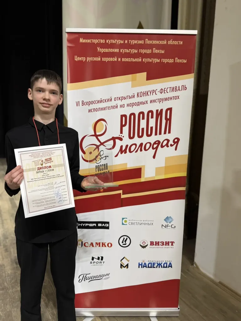 По итогам VI Всероссийского конкурса-фестиваля «Россия Молодая», проходившем 27-29 марта в г. Пенза, солист ансамбля саратовских гармоник «Родник» педагога Яркина Евгения Евгеньевича Грачев Тимофей стал Лауреатом 1 степени!