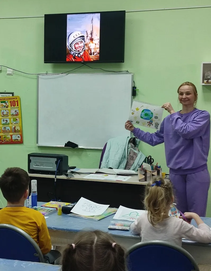 11 апреля 2026 года в подростковом клубе «Прометей» педагог Догадова У. В. организовала показ видеоролика «Про космос и первого космонавта». По завершению просмотра провела викторину и выставку рисунков «Тайны Вселенной», посвященные Дню космонавтики.