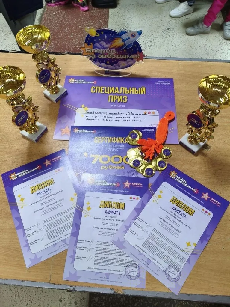 Коллектив был награжден СПЕЦИАЛЬНЫМ ПРИЗОМ за сценический потенциал и высокую энергетику исполнения, а также награжден СЕРТИФИКАТОМ на 7000 рублей на участие в конкурсах Фестивального Центра "ОРИОН".